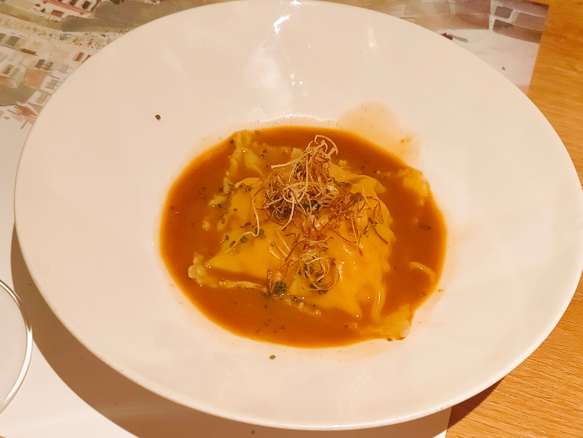 - Ravioli de gamba roja (9,5 €) - La salsa, excelente. Fue el triunfador de la noche.