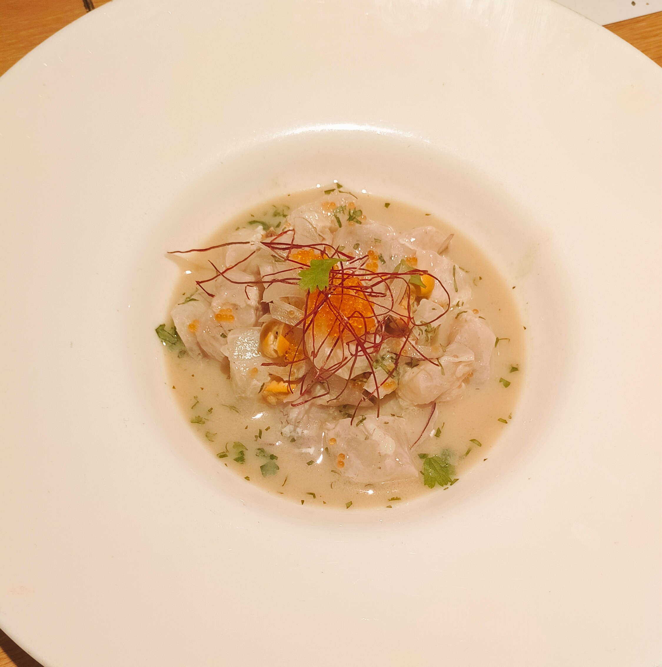 - Ceviche de Sebas (22 €) - Uno de los ceviches que más me han gustado. Sin exceso de cilantro, suave y sabroso. Fantástica textura del pescado. Para felicitar a Sebas.