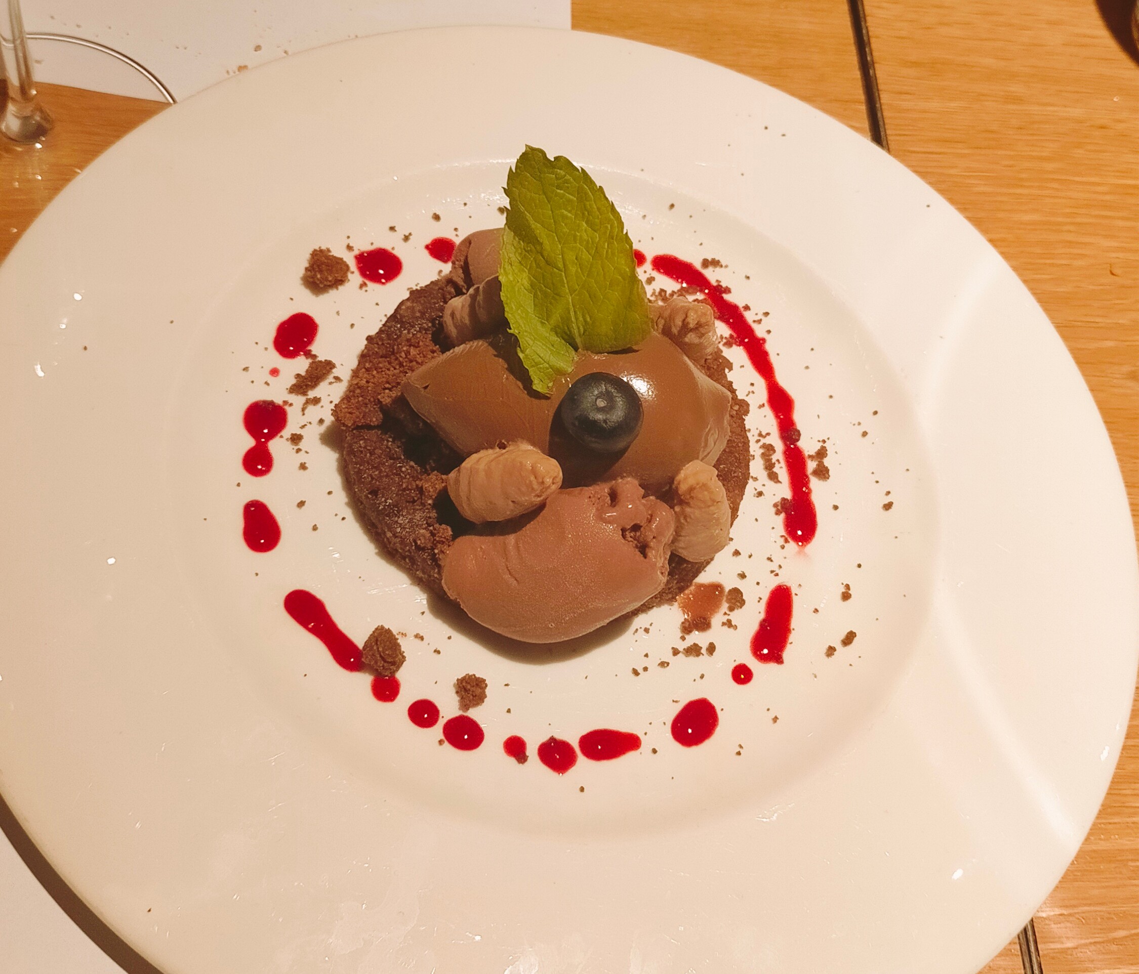 - Timbal de chocolates (8 €) - Como se puede observar en la foto, también se podría llamar "texturas de chocolate". Delicioso.