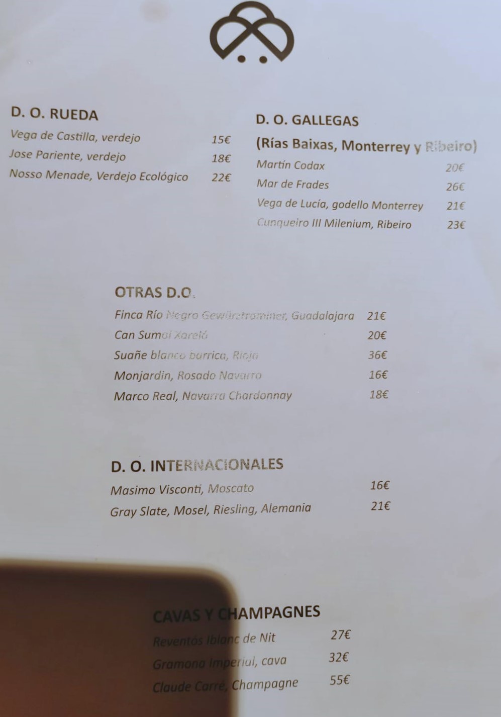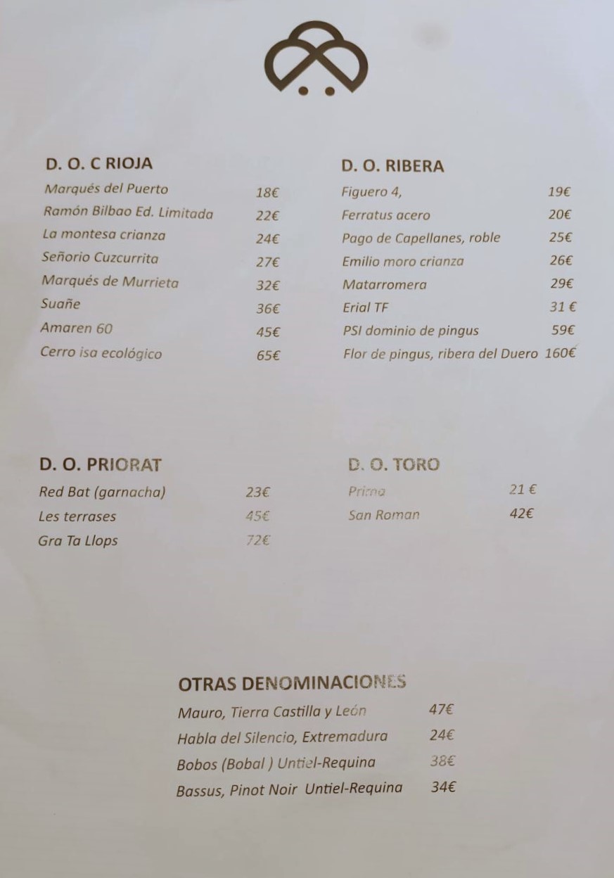 Corta carta de vinos en Riberas Duero sobremanera solicite Picocuadro pues no encontre nada de mi gusto en dicha denominación que es lo que siempre solicito.