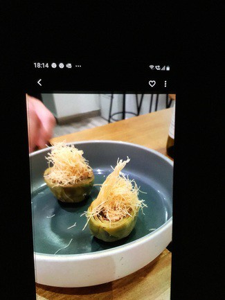 Alcachohas con turron y foie