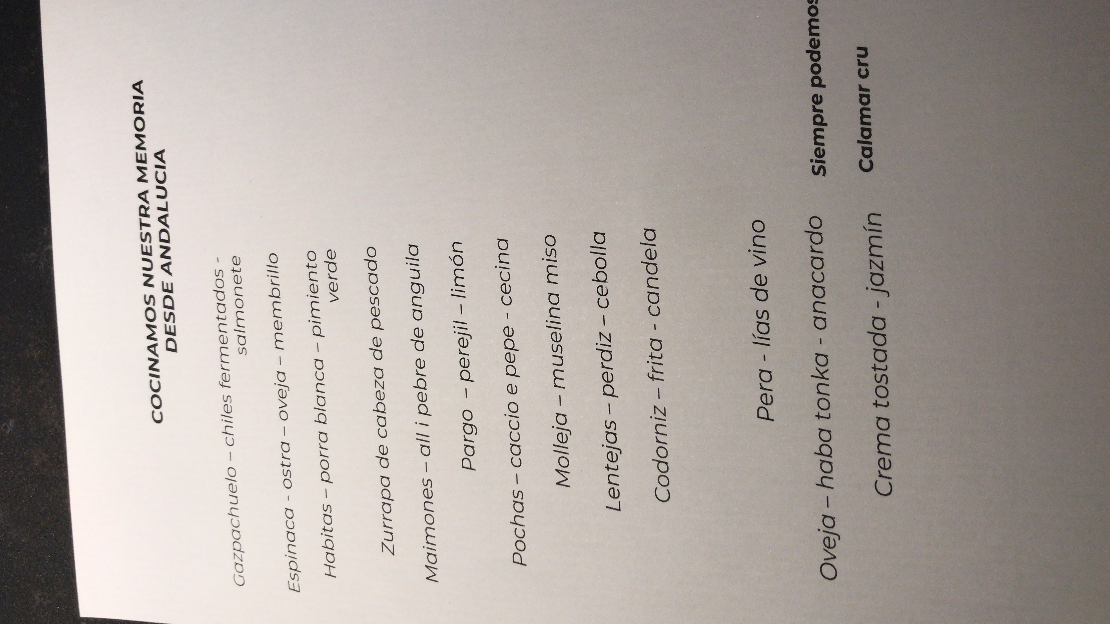 MENÚ-MARIDAJE MEMORIA : en mesa