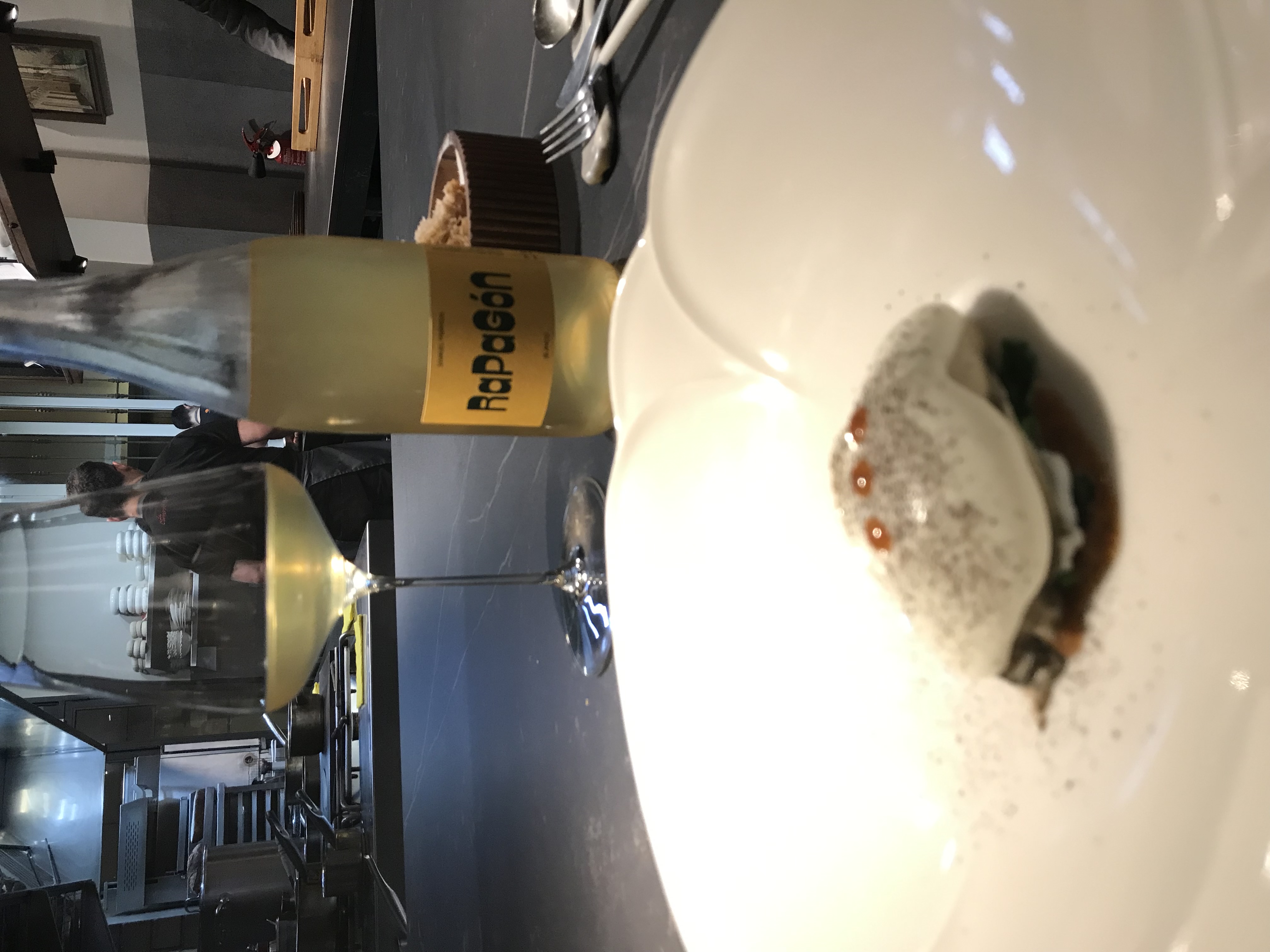 Una barbaridad de vino 93/100 y un “megahug” del plato, con merluza, pargo,…sabores infinitos, siempre zurrapa
