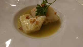 Individual, merluza rellena de txangurro, buen punto, sabrosa, ningún pero.