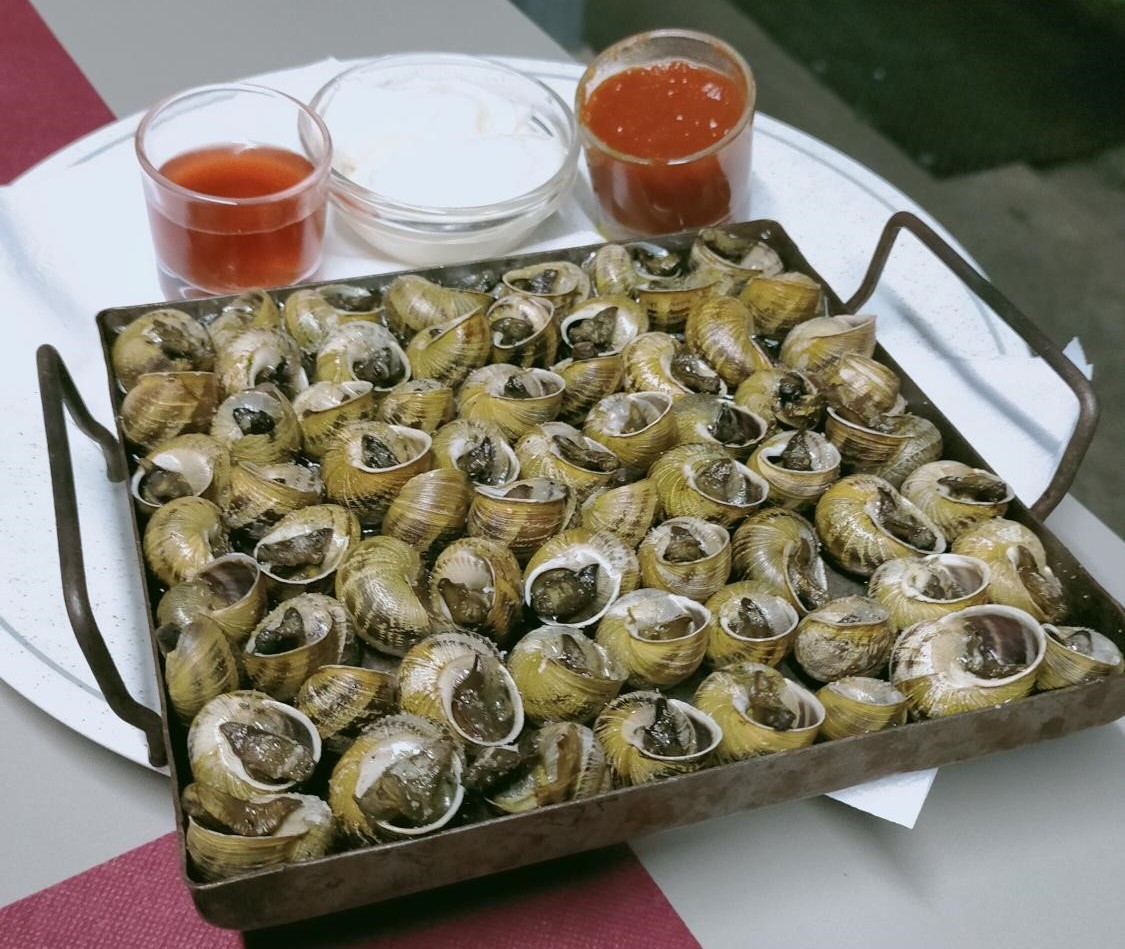 - Cargols a la llauna - Els vaig trobar horribles. Petitons, semblaven cuits de bossa, sense sal ni pebre. De les tres salses, una era vinagre i pebre vermell, com per a les escopinyes. L'allioli era fluixet. Es salvava el sofregit de tomàquet, calentó i saborós. Si ets de Lleida, millor que no els demanis.