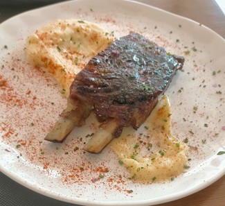 - Costillas de cerdo a baja temperatura y acabada a la brasa con su salsa (12,50 €) - Bien. El puré de patatas me sobró y me faltó la salsa.