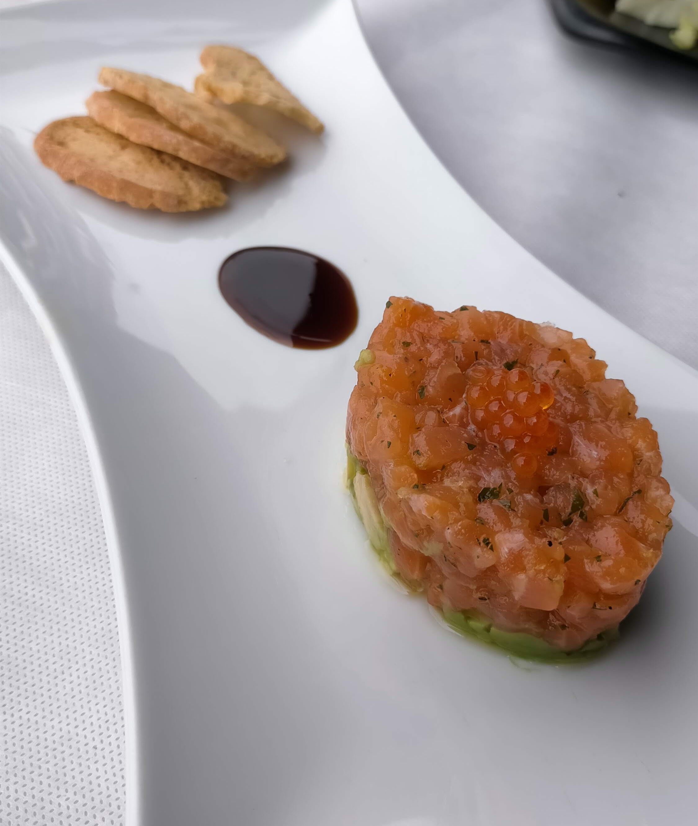 - Tartar de salmón y aguacate - Muy bueno. Hubiésemos agradecido alguna tostadita más.