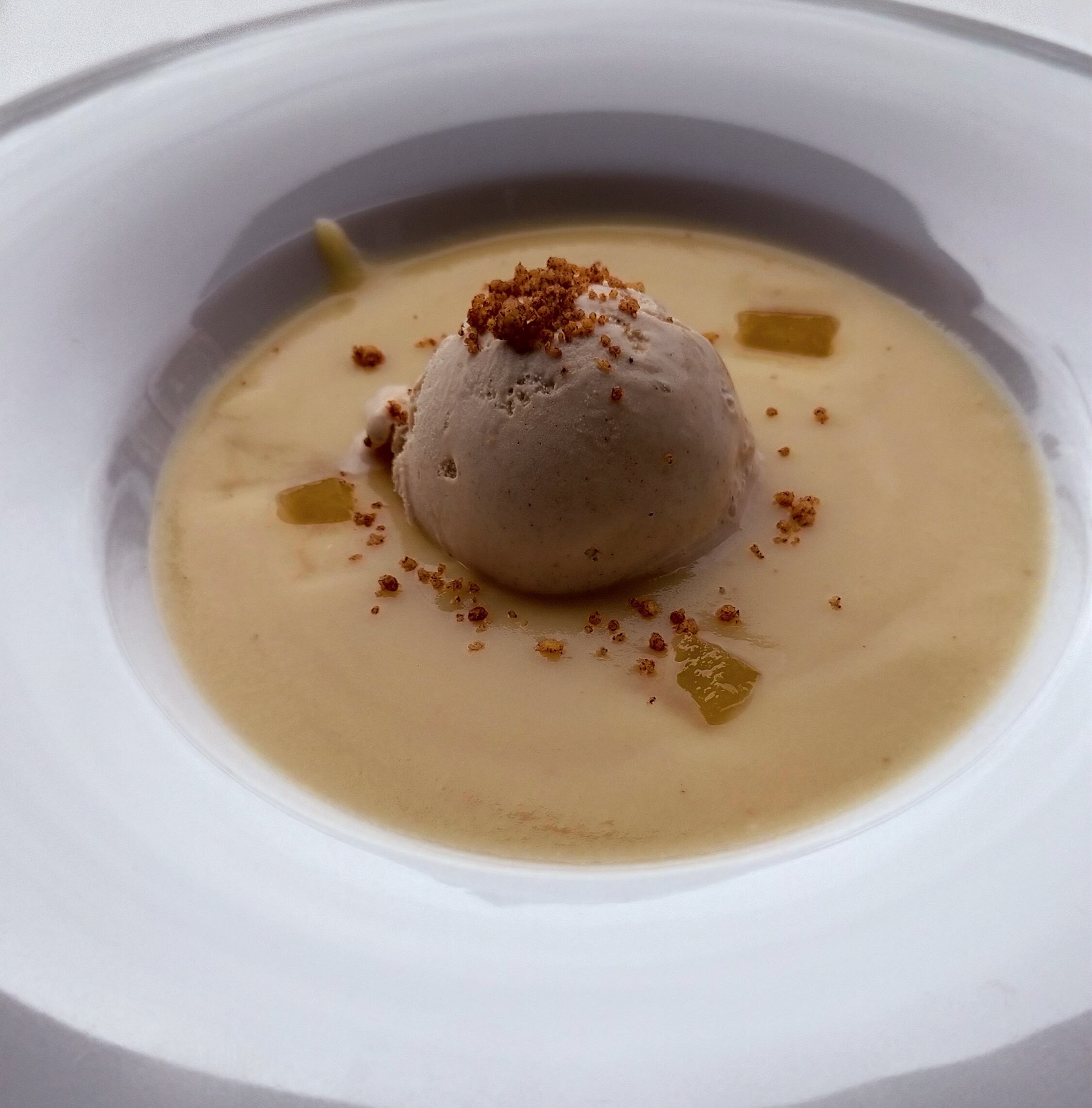 - Crema de manzana con helado de canela - Le encantó a mi mujer.