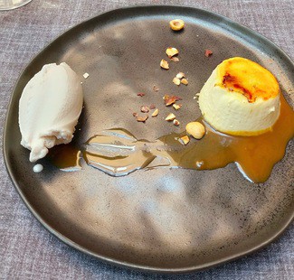 - Crema catalana con helado de horchata - La crema catalana demasiado cuajada, bien. El helado de horchata, no sabía a horchata ni a nada. Tuve que preguntar al camarero de qué era el helado. Lo dejé.