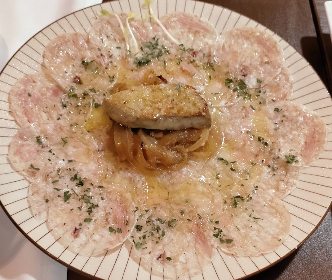 - Carpaccio de peus de porc amb foie fresc (18 €) - Deliciós. El plat que més vaig gaudir.