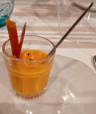 També vam demanar plats per compartir. Començàrem amb un refrescant salmorejo obsequi de la casa.