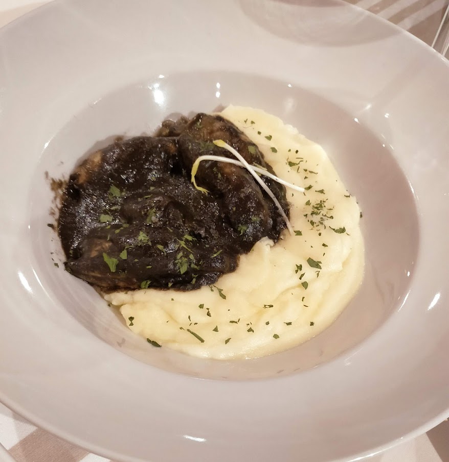 - Calamarsets farcits en la seva tinta amb xirivia (12 €) - Diferents dels típics amb parmentier de patata. Molt bons.