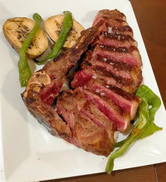 - Txuleta de wagyu madurada 40 dies (9,30 € / 100 gr.) - A la meva dona i a la meva filla els encantà. Jo hauria triat una carn amb més maduració, però la que els quedava era massa gran per a nosaltres tres. Ens van portar una pedra per tal que l'acabéssim de fer al nostre gust.