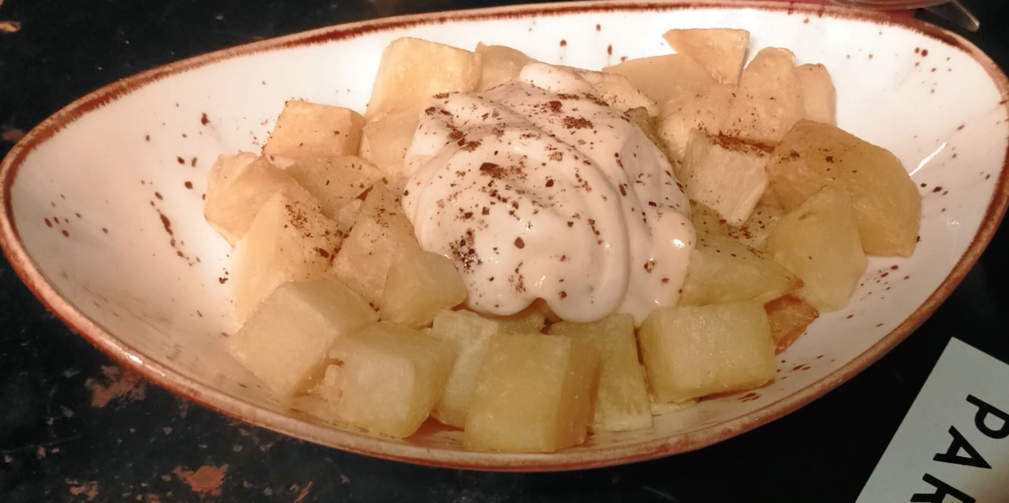 - Patates braves amb salsa d'alls rostits i chile adobat (4,80 €) - Bones patates i salsa gustosa, tot i que hauríem agraït que fos més abundosa.
