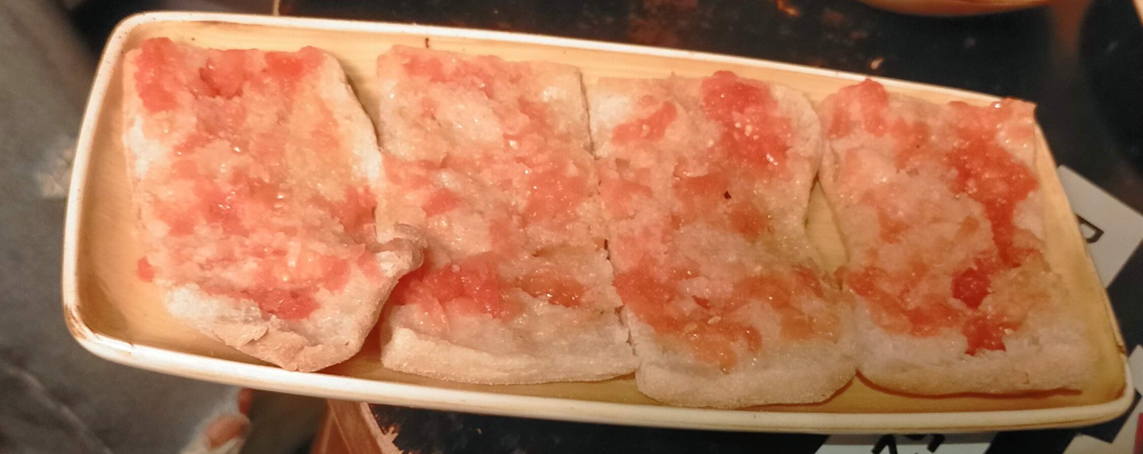 - Pan con tomate (2,95 €) - Seis rebanadas de tamaño algo justo.