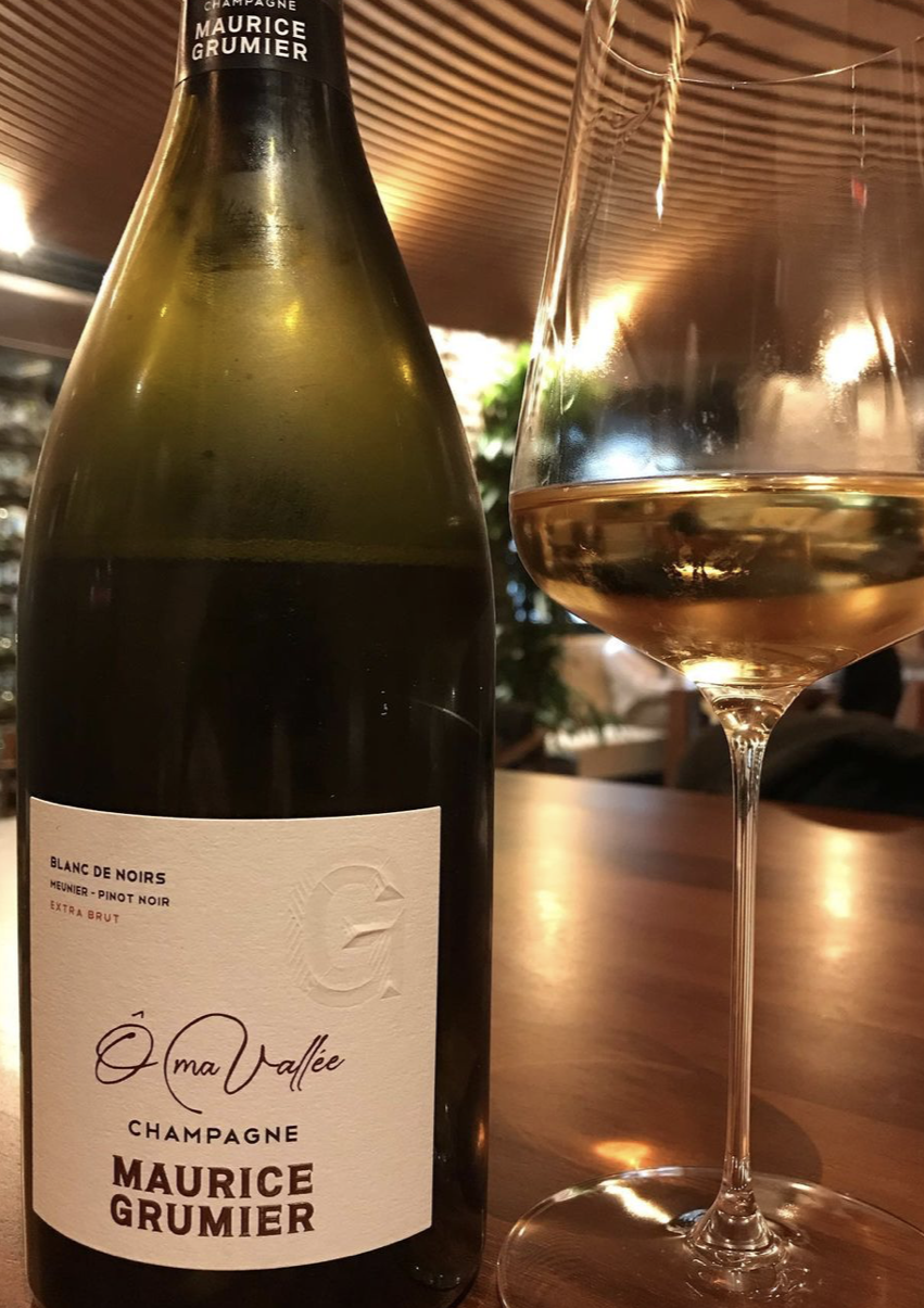 Elegimos Champagne Blanc de Noirs " Maurice Grumier" Extra Brut ( 4gr/l), elaborado solo con 2 variedades tintas Meunier 80% y Pinot Noir 20%, de 3 viñedos ( cru) : Dormans, Festigny, Venteuil. Vinos 60% de 2018 y 40% 2016. Degollado Mayo 2021 ( 40643 botellas 75cl). Exquisito.