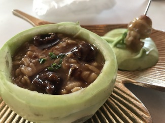 6-GATO POR LIEBRE,..jajajaj , buen nombre, risotto de pipas de girasol y conejo: exquisito plato y el falso arroz de pipas me mola como idea, me quedé con ganas de más.
