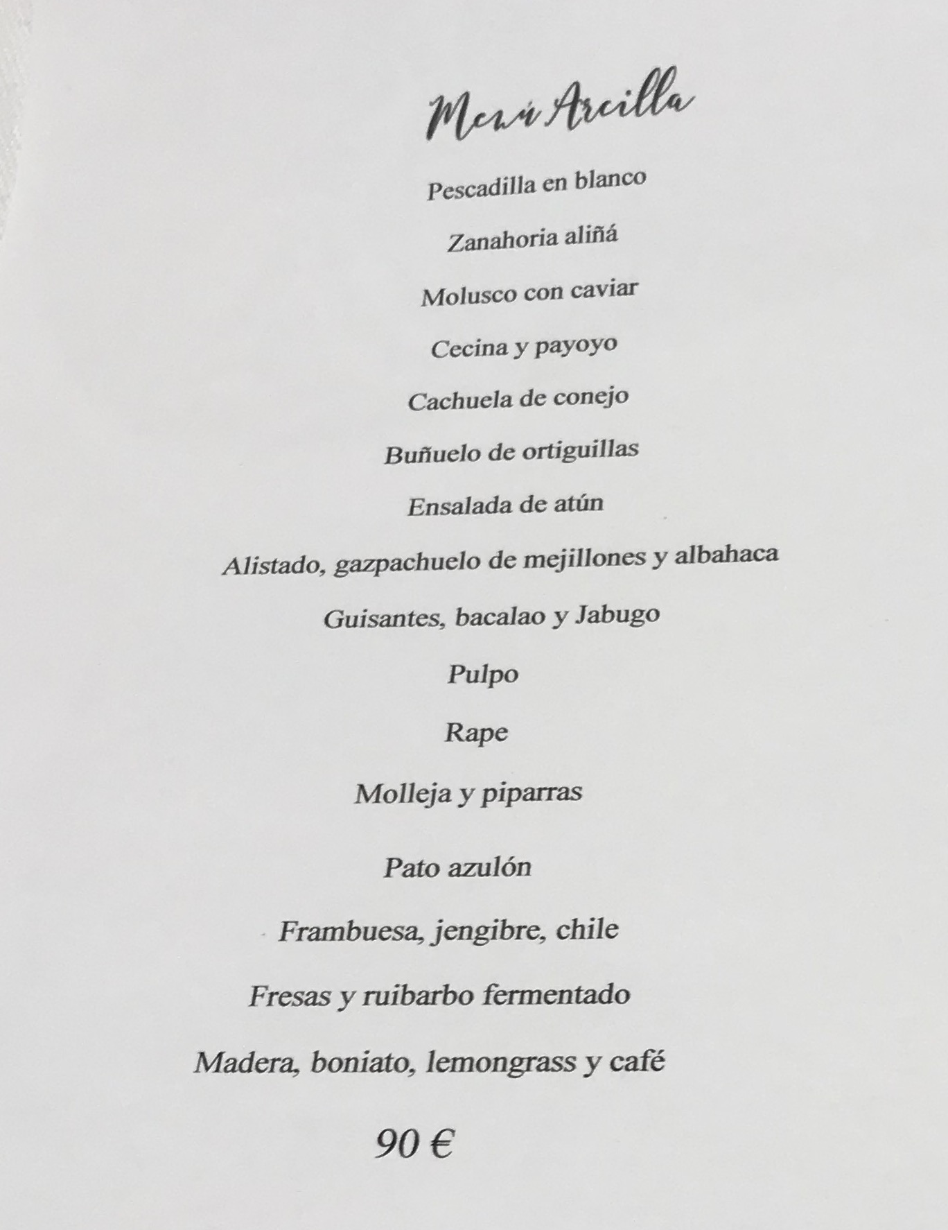 Elegí el menú arcilla que os he subido, más que suficiente para una cena a las 21 horas.