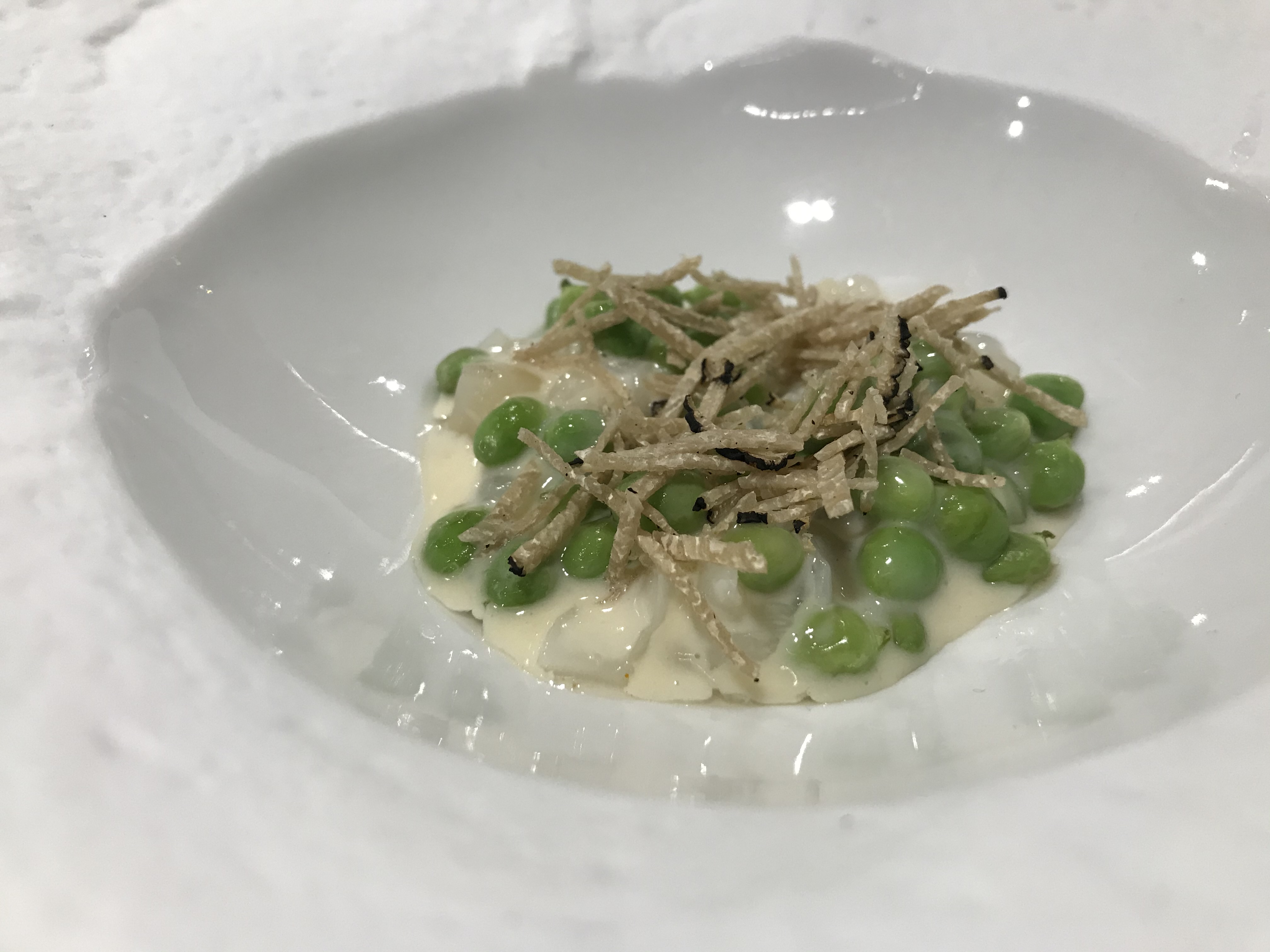 Continuamos con guisantes con bacalao y jabugo.....buf. Doble maridaje de Jerez.