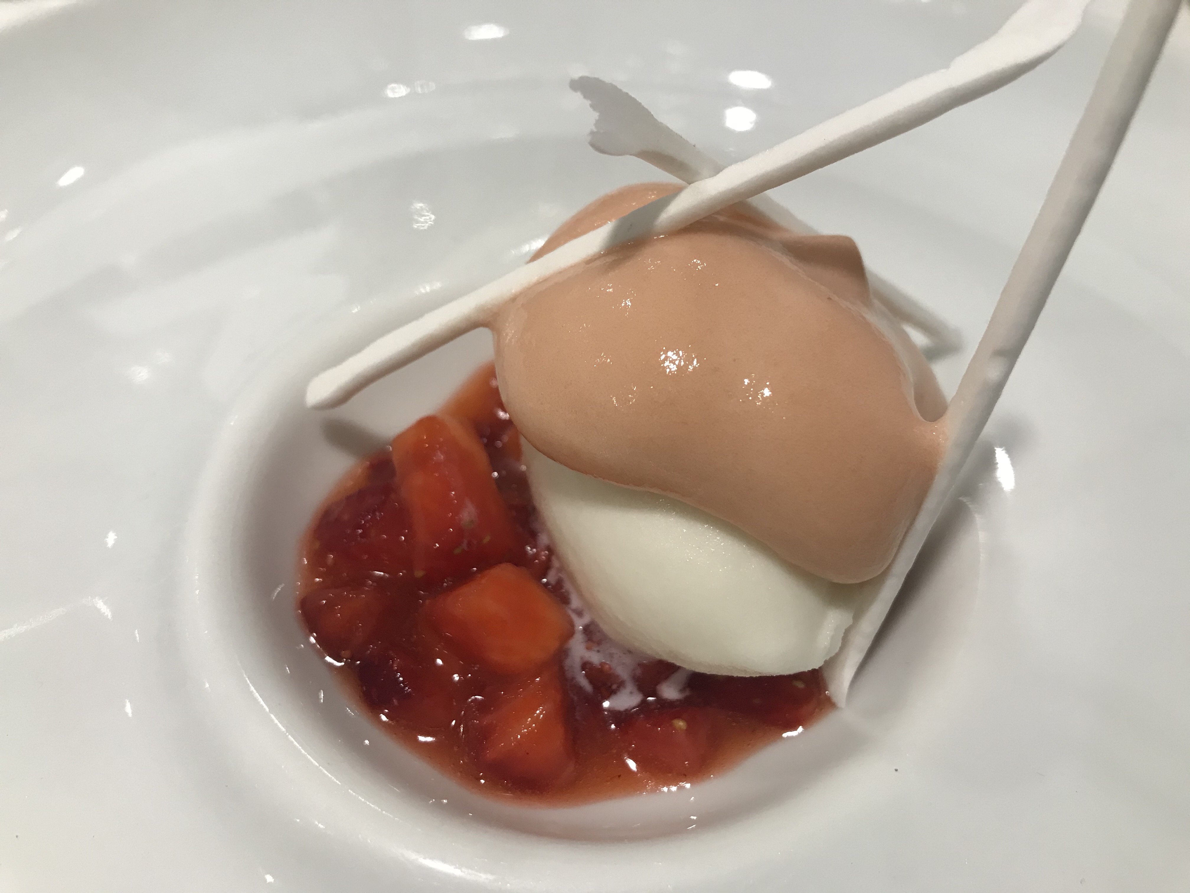 Que te reciban con Caberrubia ( TOP ) y un en blanco templado es maravilloso.....amo el gazpachuelo y el en blanco. y el cortado de tratar de cecina,...brutal en todo presentación, texturas, sabores, temperatura, conjunto y armonía.