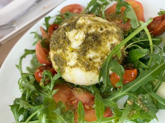 - Ensalada de burrata, pesto y tomates encurtidos (11,90 €) - Fresca y sabrosa. Muy buena, a pesar de la rúcula de bolsa.