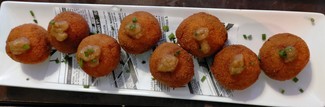 - Croquetes de ceps i foie d’ànec amb crema de ceba (14,95 €) - Les trobàrem insípides i només tenien gust de ceps.
