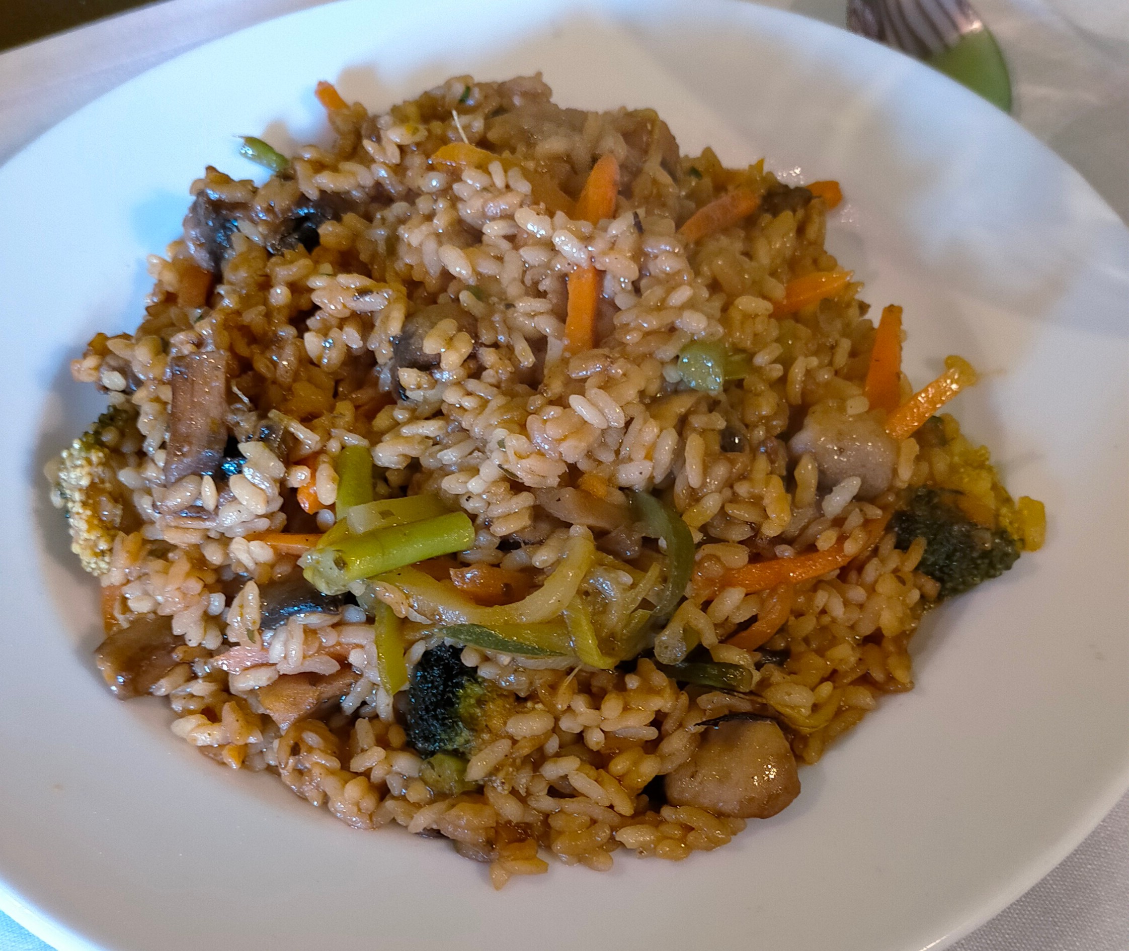- Arròs de verduretes i xampinyons de temporada (19,95 €) - Va agradar molt. L'arròs per a dos va donar per a quatre. Vam emportar-nos a casa el que sobrà.