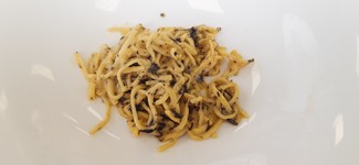 -Linguini con salsa ligera de carbonara y trufa negra de invierno con el vino Fornos de Aníbal.