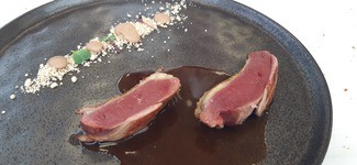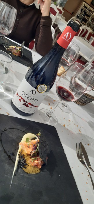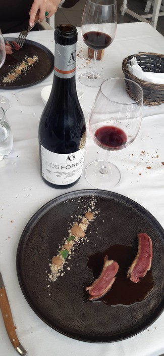 -Magret de pato con su demiglass y su tierra de setas, muy rico quizás lo malo que sea algo escaso, con el vino Otero de Aníbal.