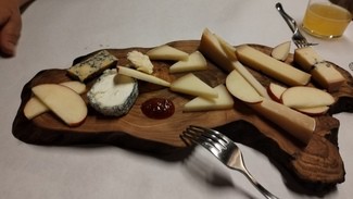 De postre una rueda de quesos de guipúzcoa y de origen francés con copa de Oloroso de la marca Barajuela de añada (2013).