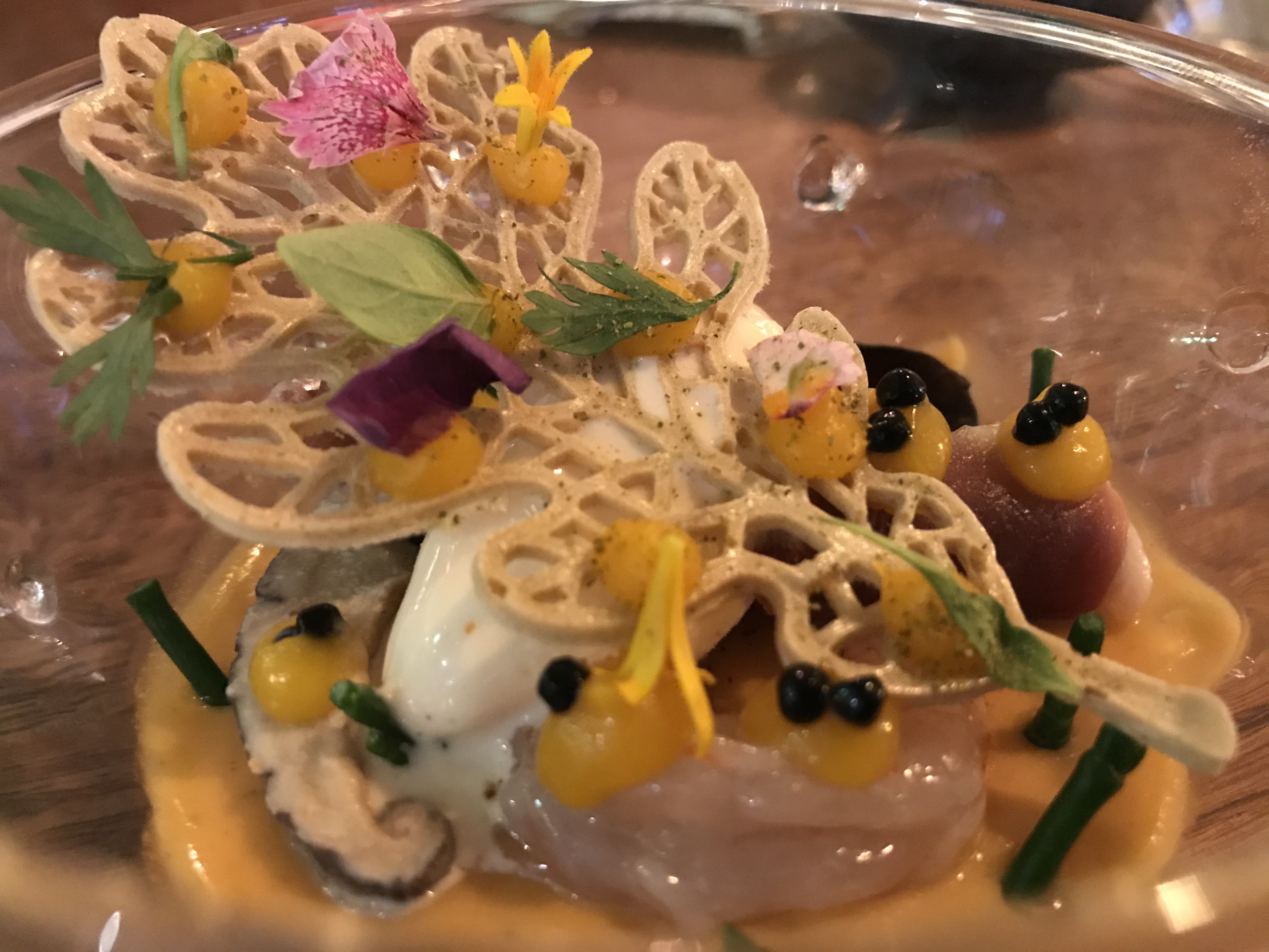El chef se cruzó a su otro restaurante un par de veces y volvió a cocina, con ordeno y mandó a su equipo, la sala es pequeña y las mesas algo juntas, quizá un espacio algo mayor mejoraría la sala. El sumiller y las camareras lo hicieron bien, en el punto de conocer mucho la carta de vinos con algunas referencias exquisitas como esta botella Schieferkopf Saint Jacques Riesling 2016, con todas las notas evolutivas en su máximo apogeo.