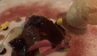 -El cerdo NEGRO de la isla estaba espectacular, algo más hubiera trinchado. Eucalipto y colanillas excelentes. Demasiado colorido rojo en el plato.