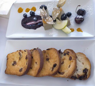 - Foie micuit con frutos negros y tostadas de brioche con pasas (18 €) - Estupendo.