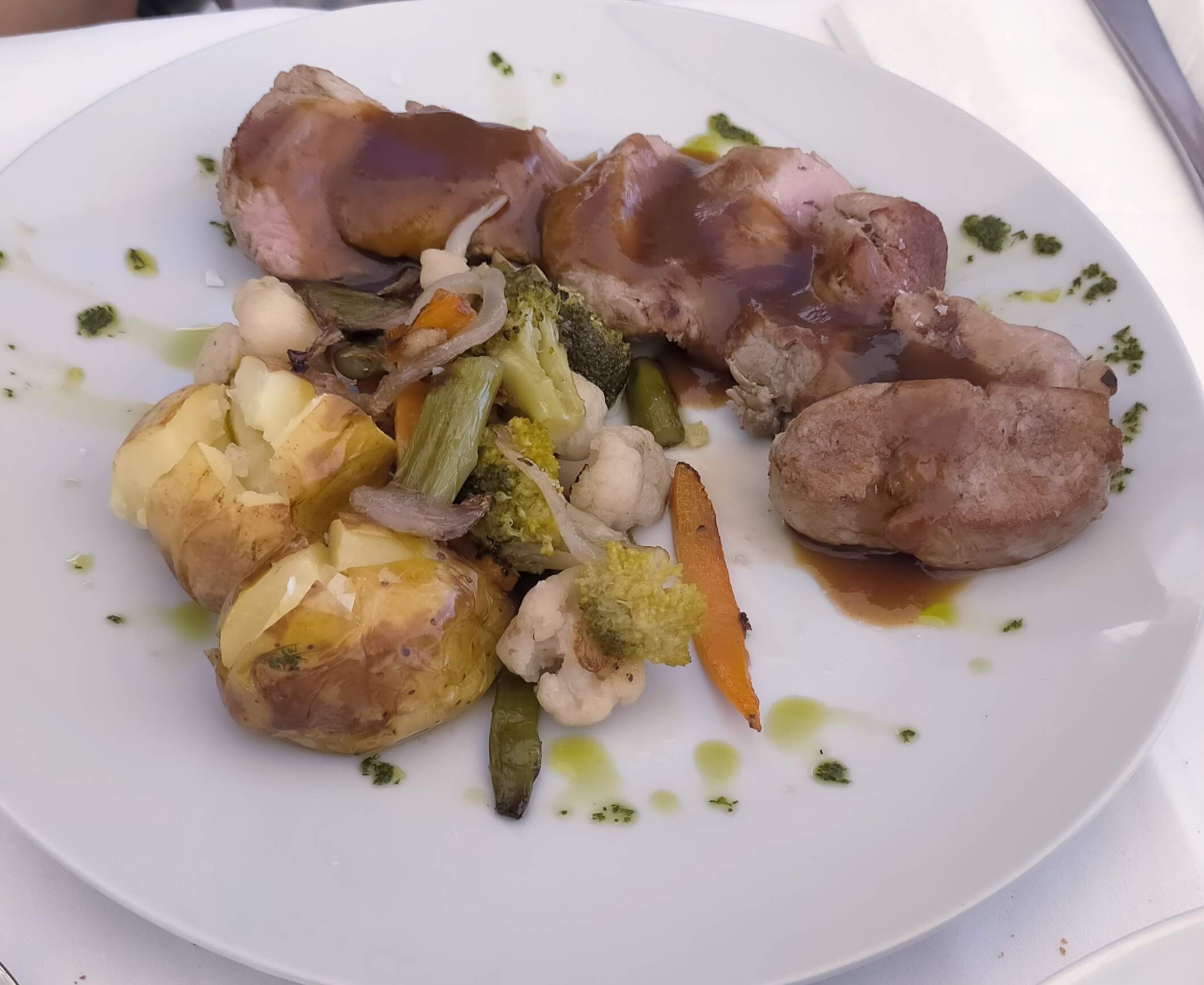 - Solomillo de cerdo ibérico con verduras (18 €) - Muy bueno. Excelentes verduras.