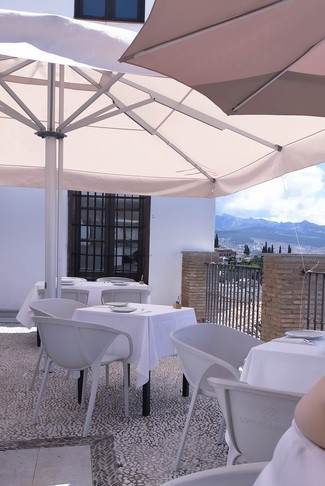Situado en una placeta interior del bajo Albaicín de Granada, este local relativamente nuevo solo cuenta con terraza, con unas vistas estupendas de la ciudad.