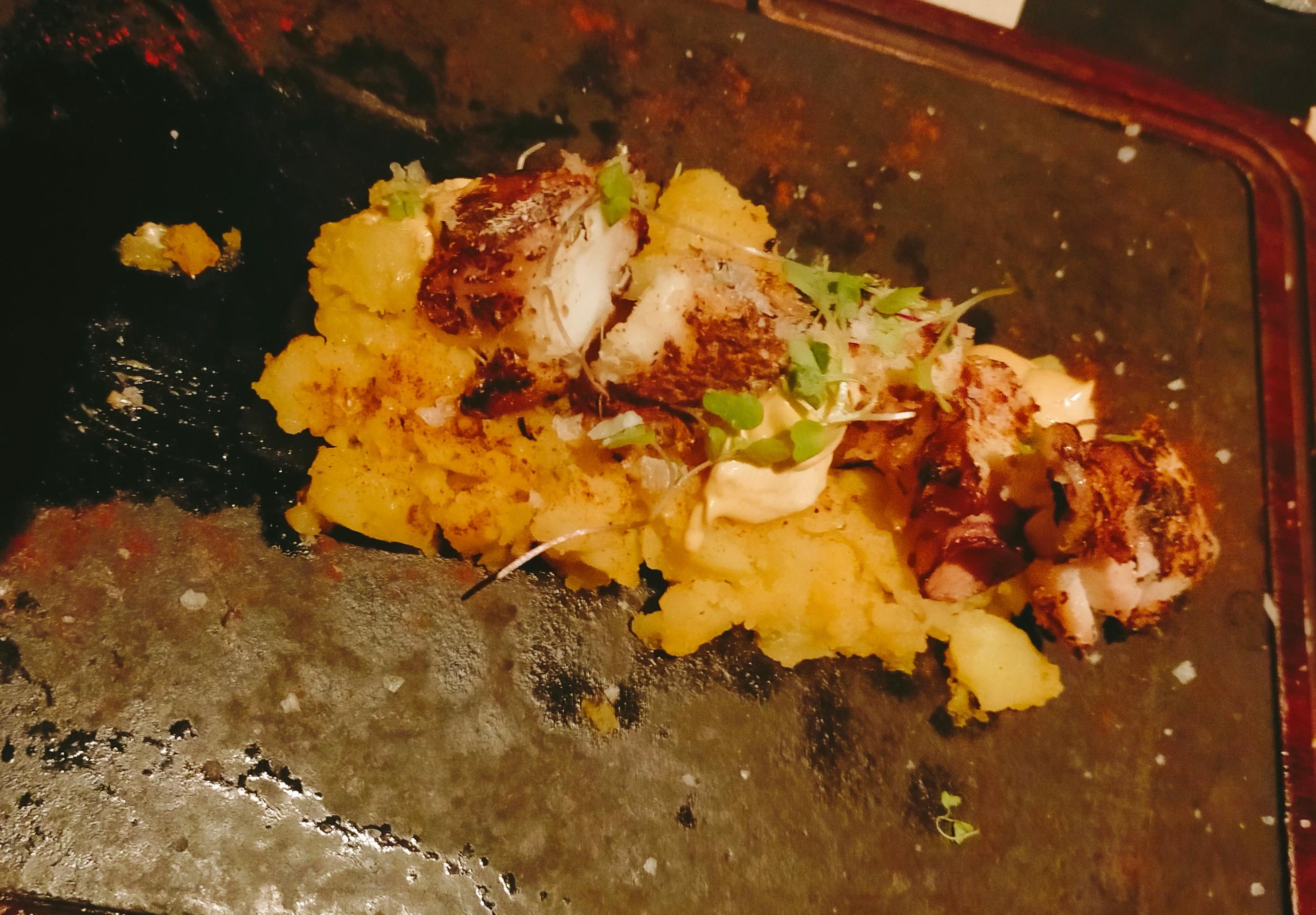 - Pulpo a la brasa con patatas revolconas y mahonesa de pimentón - Lo único que nos gustó algo, pero sin más.