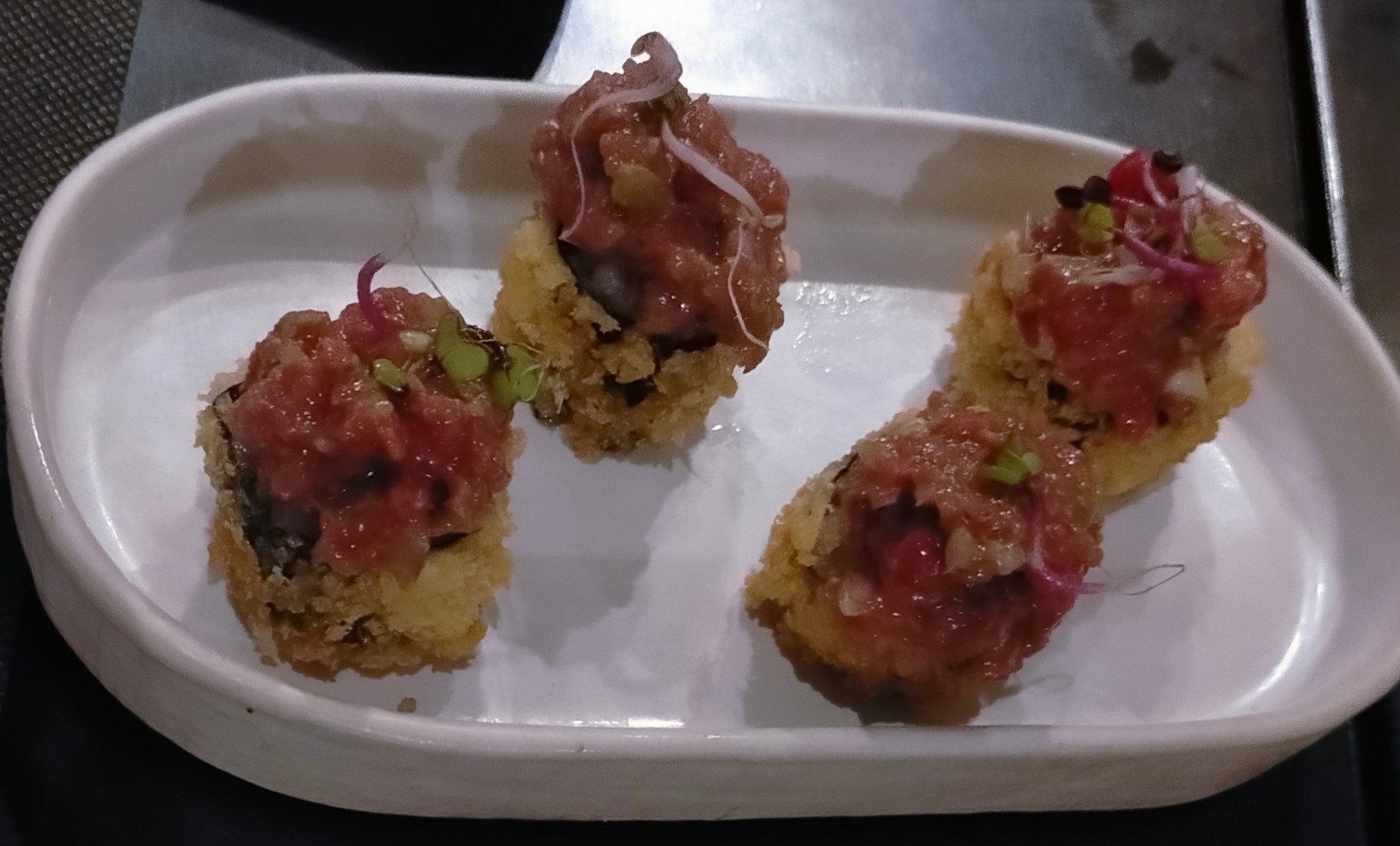 - Frito steak tartar - Maki frito en panko, cubierto de steak tartar. Muy rico.