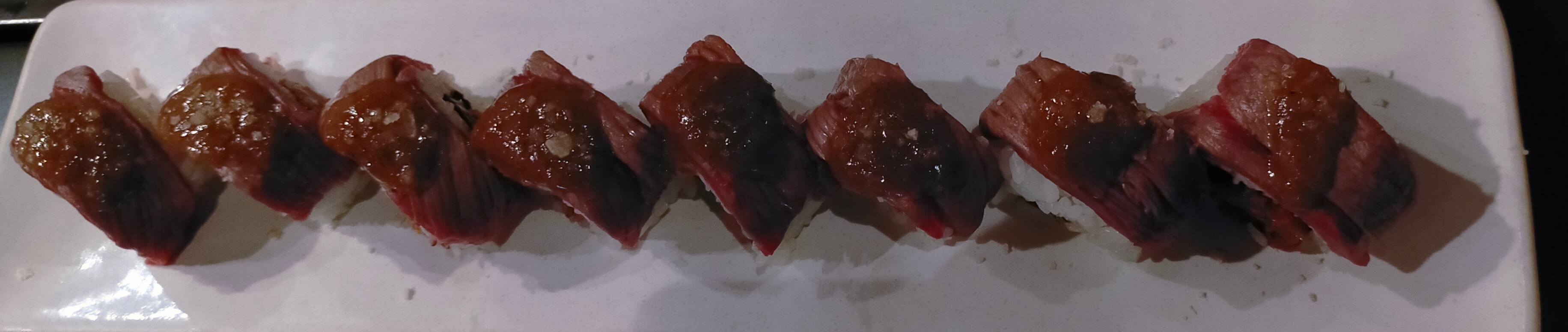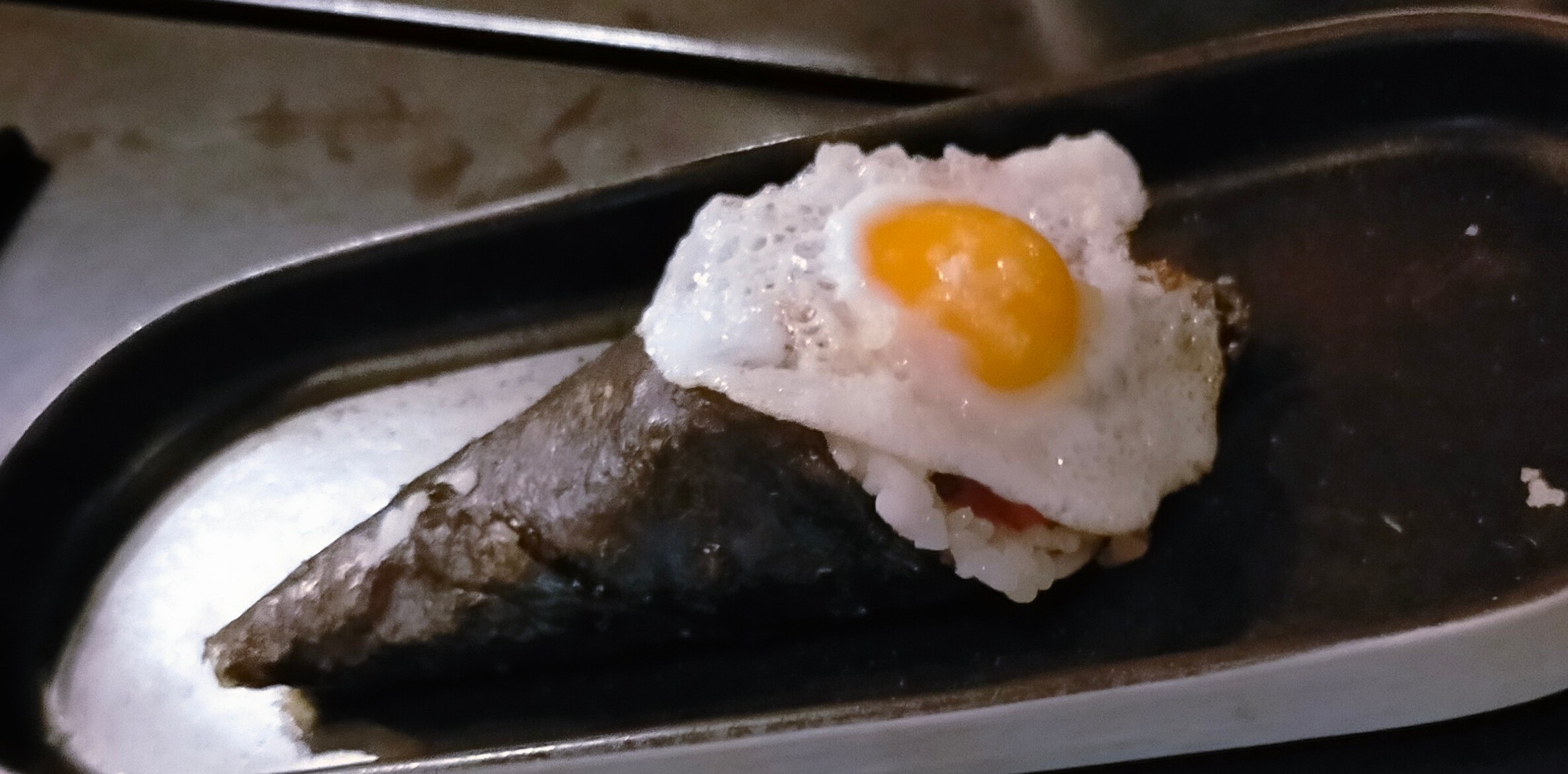 - Mini temaki steak tartar - Relleno de steak tartar de solomillo de ternera y cubierto con un huevo de codorniz frito. Muy bueno.
