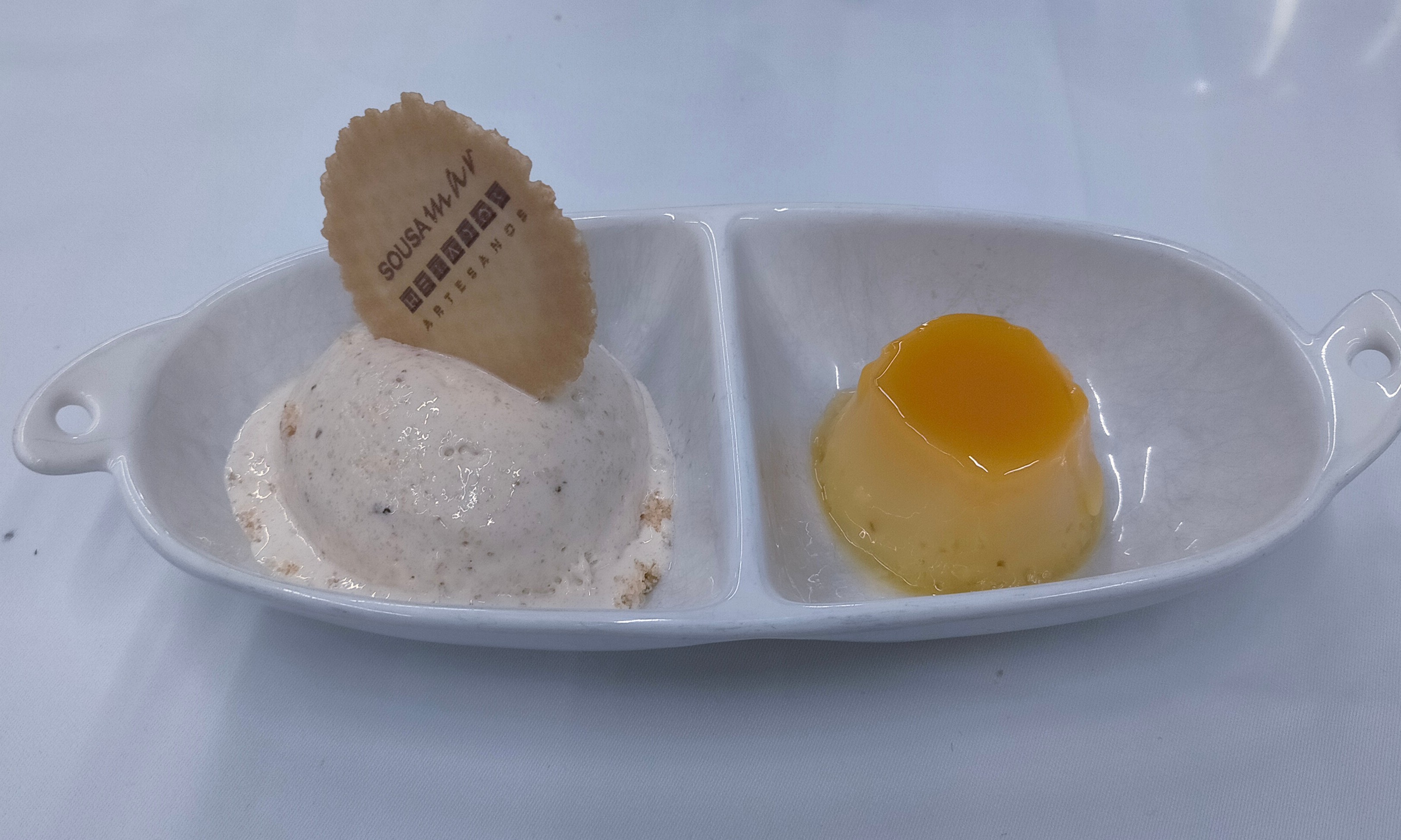 - Tocinillo de cielo con helado de corbatas de Unquera (6,50 €) - Delicioso dos en uno.