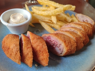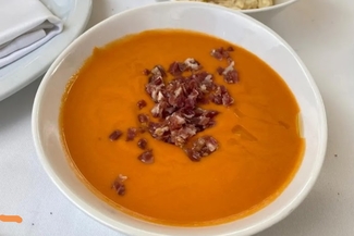 Pedimos media de salmorejo cordobés a 5'50€, berenjena frita media ración a 5'50€, flamenquin a 13'50€, de beber cerveza Alhambra y fino cebolla a 2'90€ la cerveza y el fino a 3'20€.
