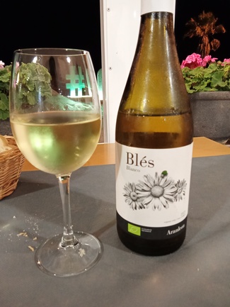 Acompañado de una copa de vino blanco Blės Moscatel seco 2023 a 3€.