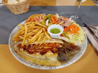 Lenguado a la plancha con guarnición, algo pequeño la ración pero rico y fresco a 15€.