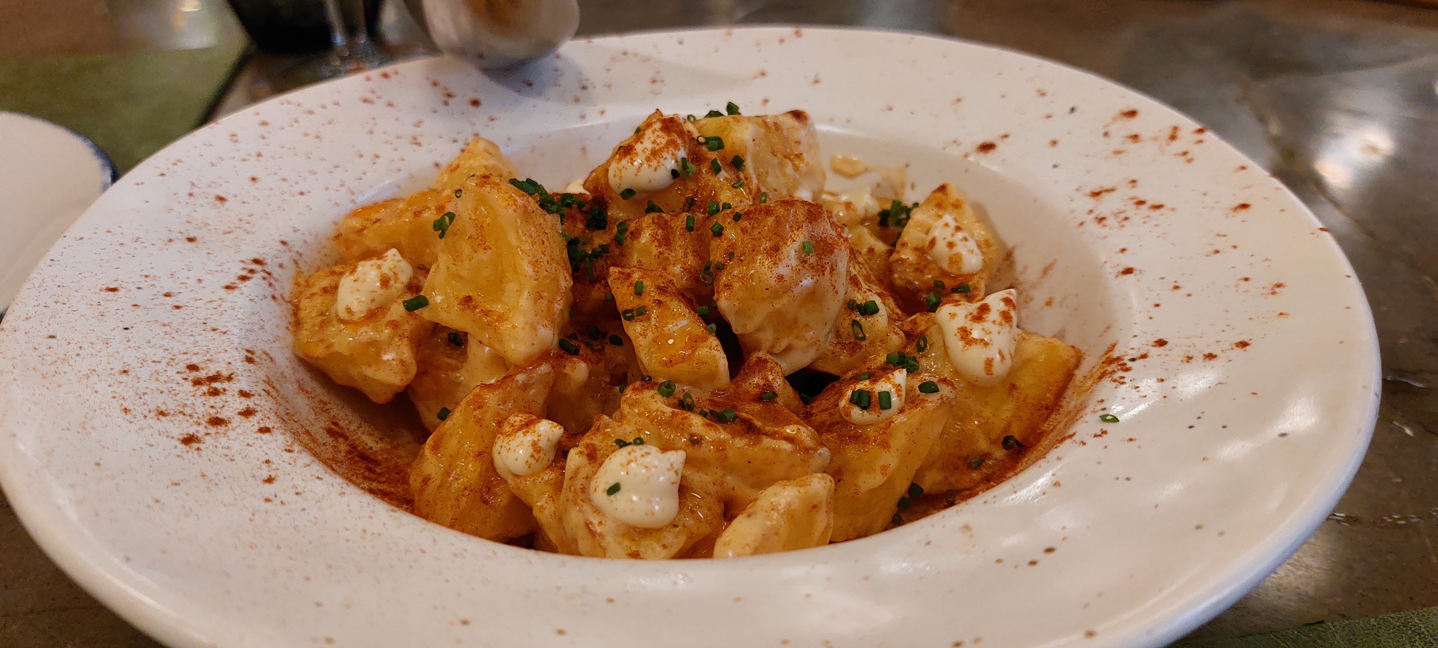Bravas: siempre las recomiendan y nunca las habíamos probado, buen nivel, con su punto picantito y ligeramente crujientes por el exterior