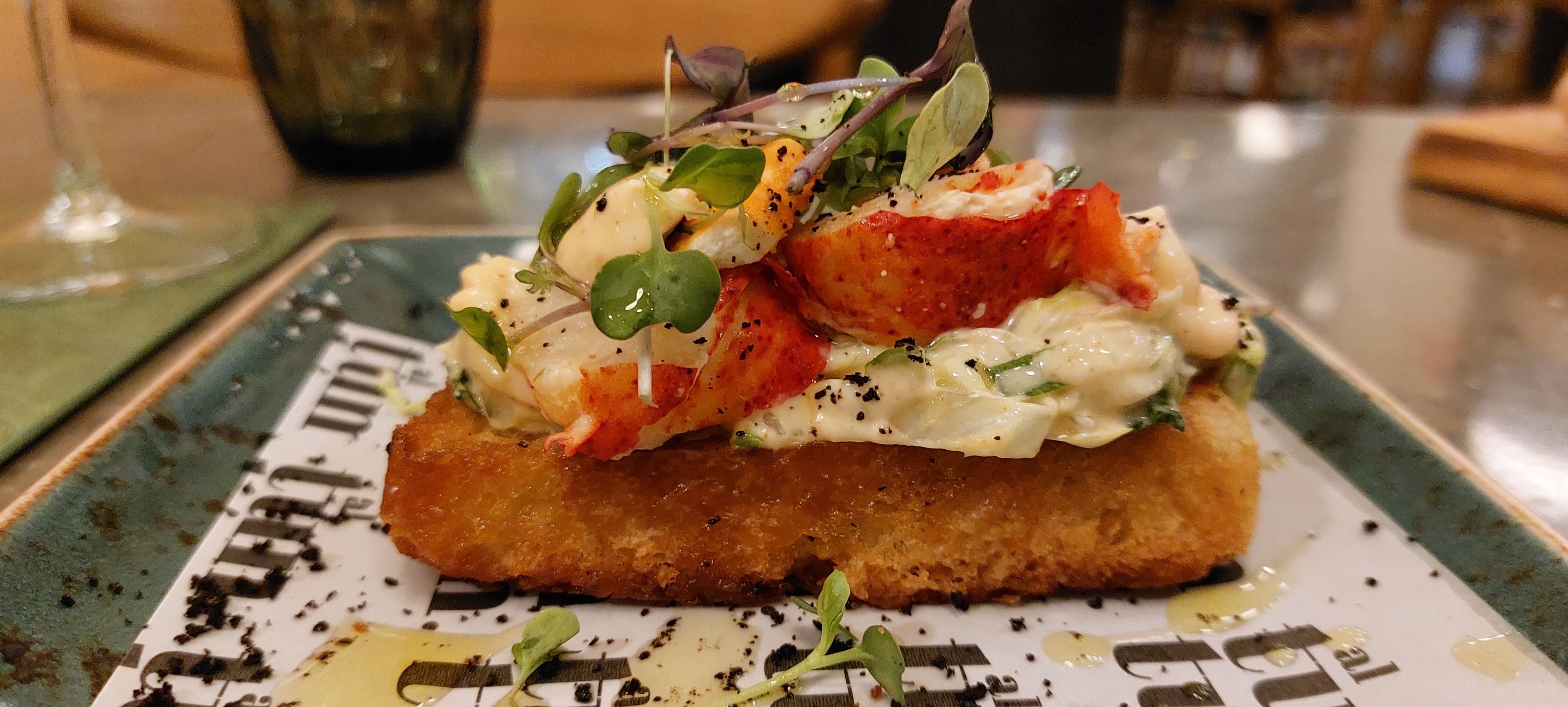 Montadito de pan brioche con bogavante: es un fijo que solemos repetir, de vicio.