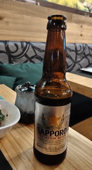 De beber cerveza Sapporo a 3'30€ el tercio, buena armonía!