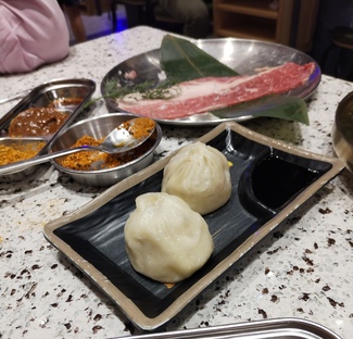 Pedimos bao de carne de pato y de sepia, muy ricos y originales por 10€ vienen 6 unidades.