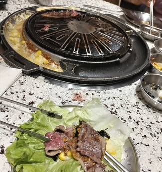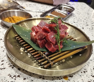 En la mesa en el centro tienen una plancha donde te cocinas la carne que quieras, tienen bastante variedad de todo tipo de carnes y cortes.