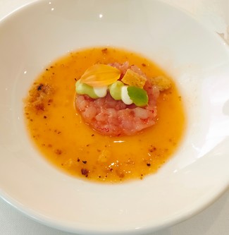 - Tarta de gamba roja de Alborán y salsa tex-mex