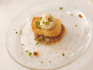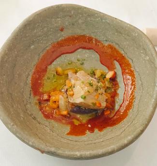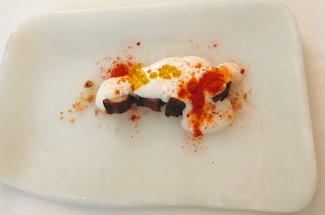 - Pulpo seco con salazones y ajoblanco