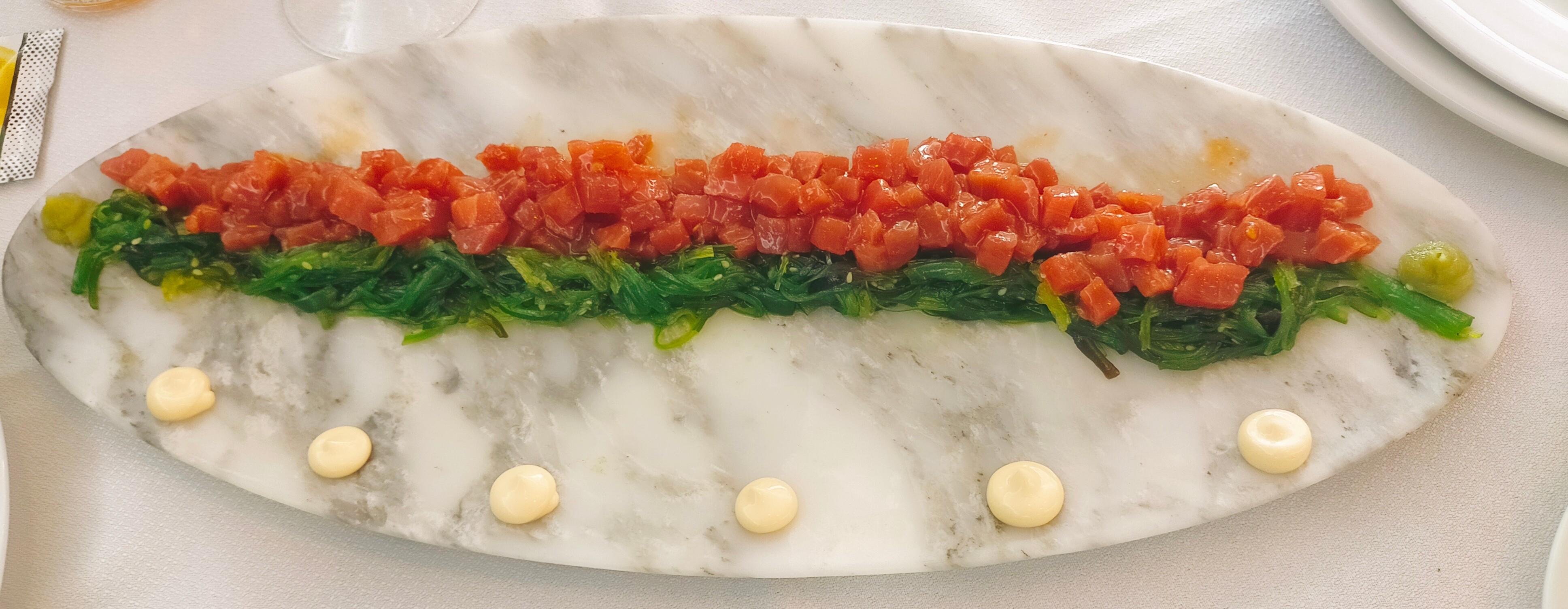- Tartar de atún con alga wakame y sésamo - Una de las pocas concesiones a la comida de moda. Correcto.